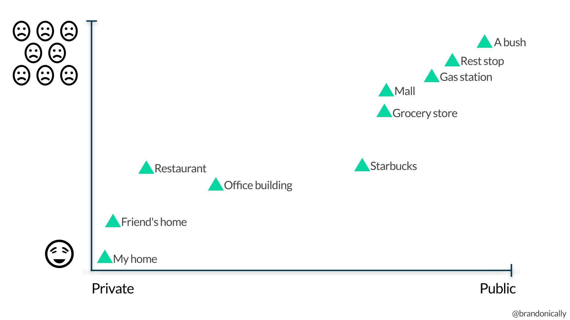 Bathroom locations and corresponding feelings.